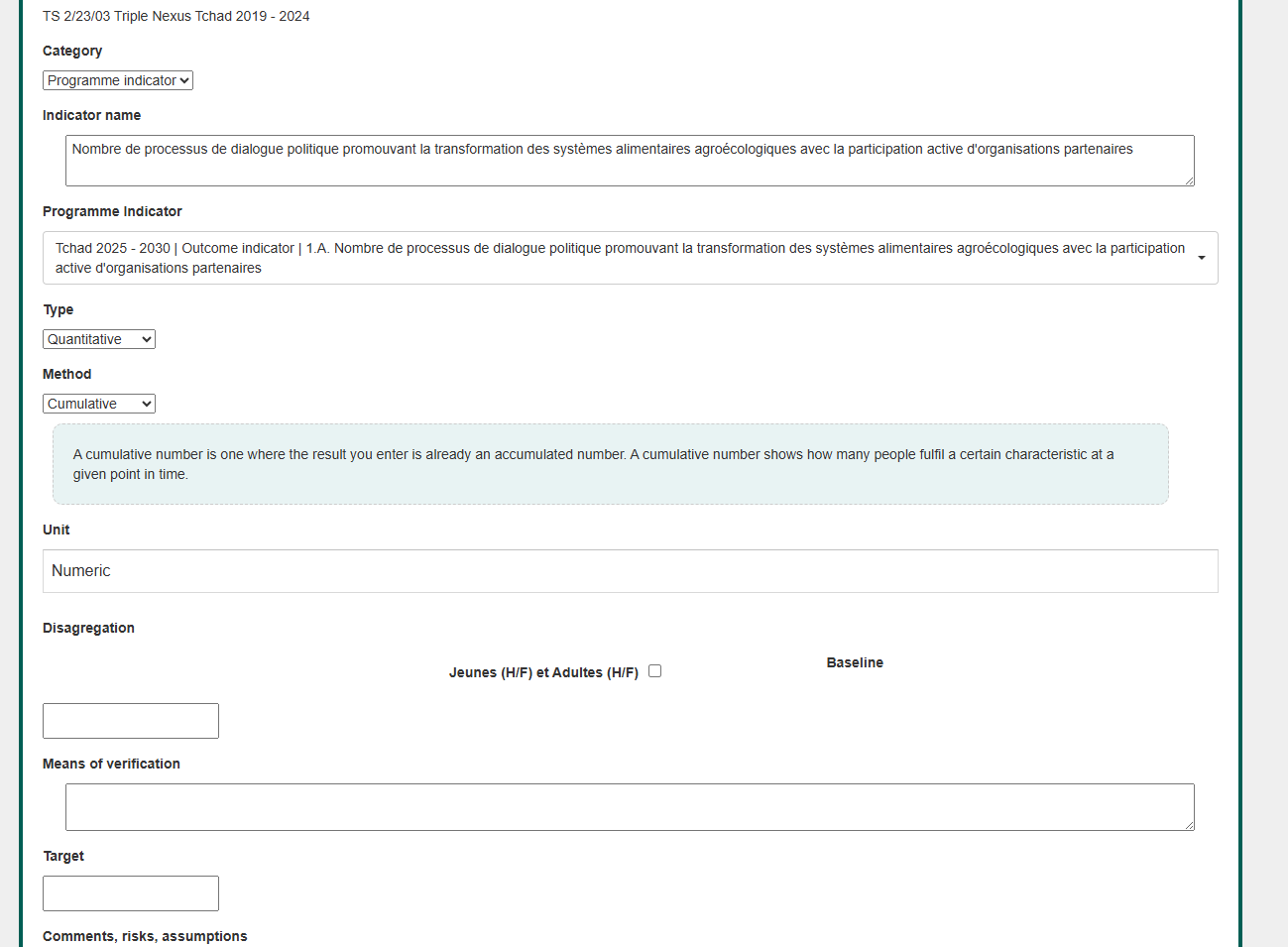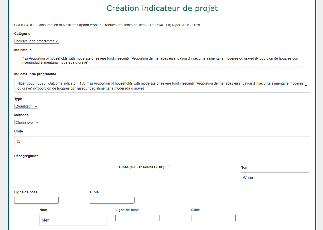 closedJe souhaite que si aucune désagrégation n'est enregistrée au niveau du programme, aucune désagrégation ne soit affichée au niveau du projet.